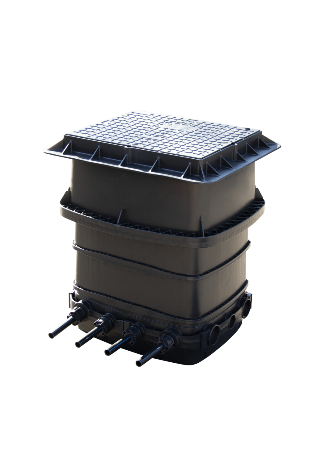Bridages des PE avec presse étoupe pour un maintien des tuyaux avec un fond de regard pour une propreté permanente.